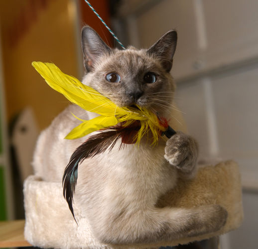 Miso, just over a year old, is a stunning Siamese mix with a confident, vocal personality and strong mama instincts. She’s friendly and enjoys being with her people, but she prefers affection on her terms, once she’s had enough, she’ll politely (and sometimes not-so-politely) let you know. With a little patience, she warms up beautifully and becomes a devoted lap cuddler. She’s curious, playful, and fiercely protective of her baby girl.